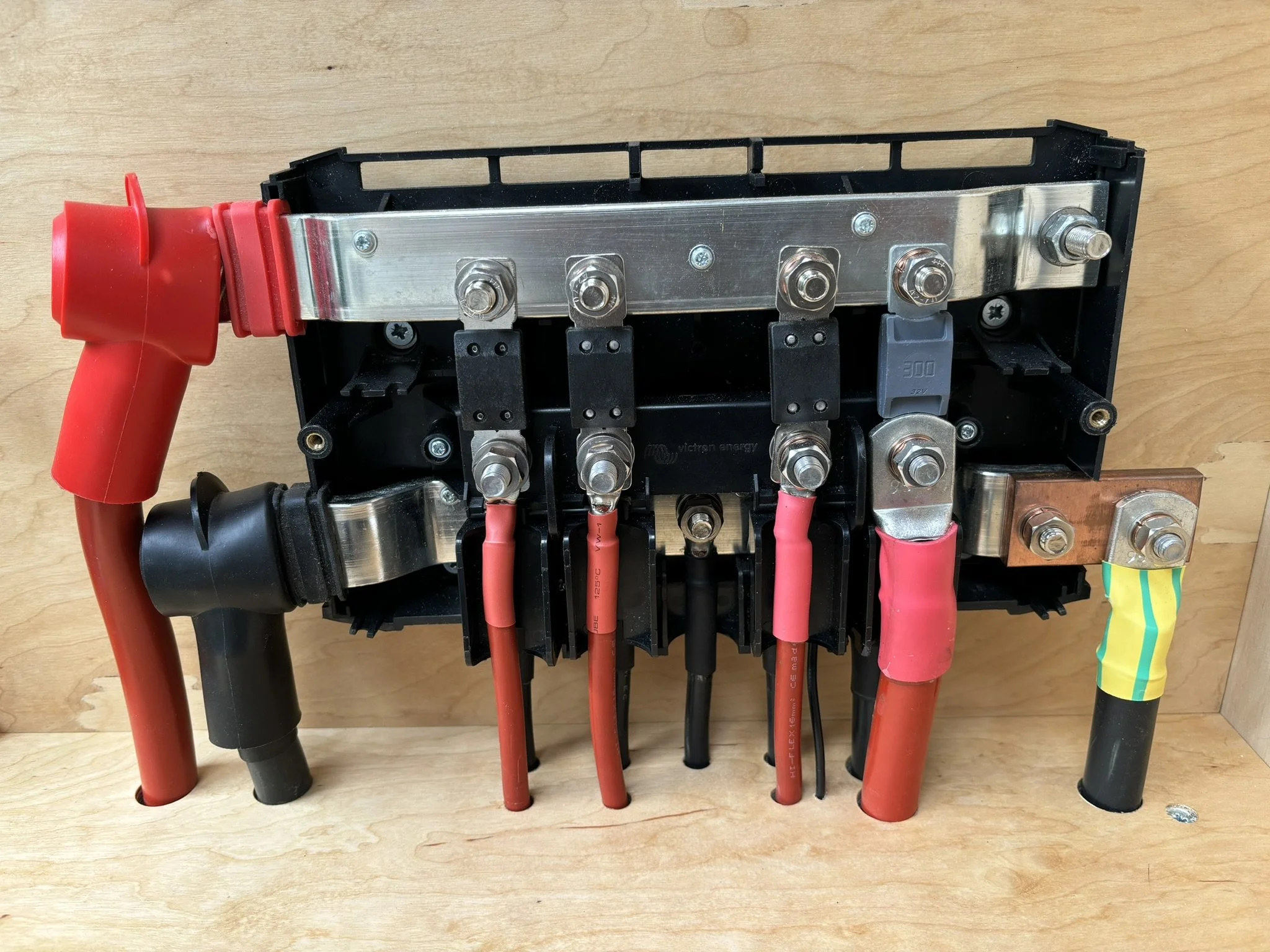 Lets start on the electrics. Scheme put together by Roamer who supplied all the kit and a schematic - we are going gas-less with diesel heating and induction cooking.