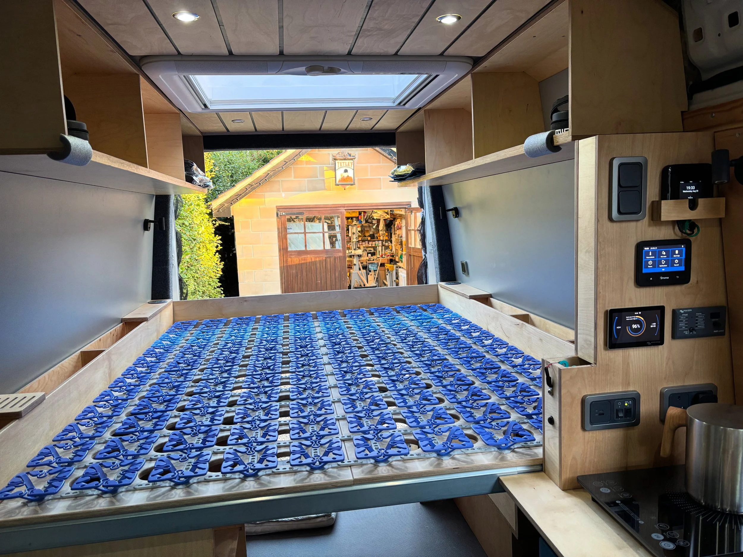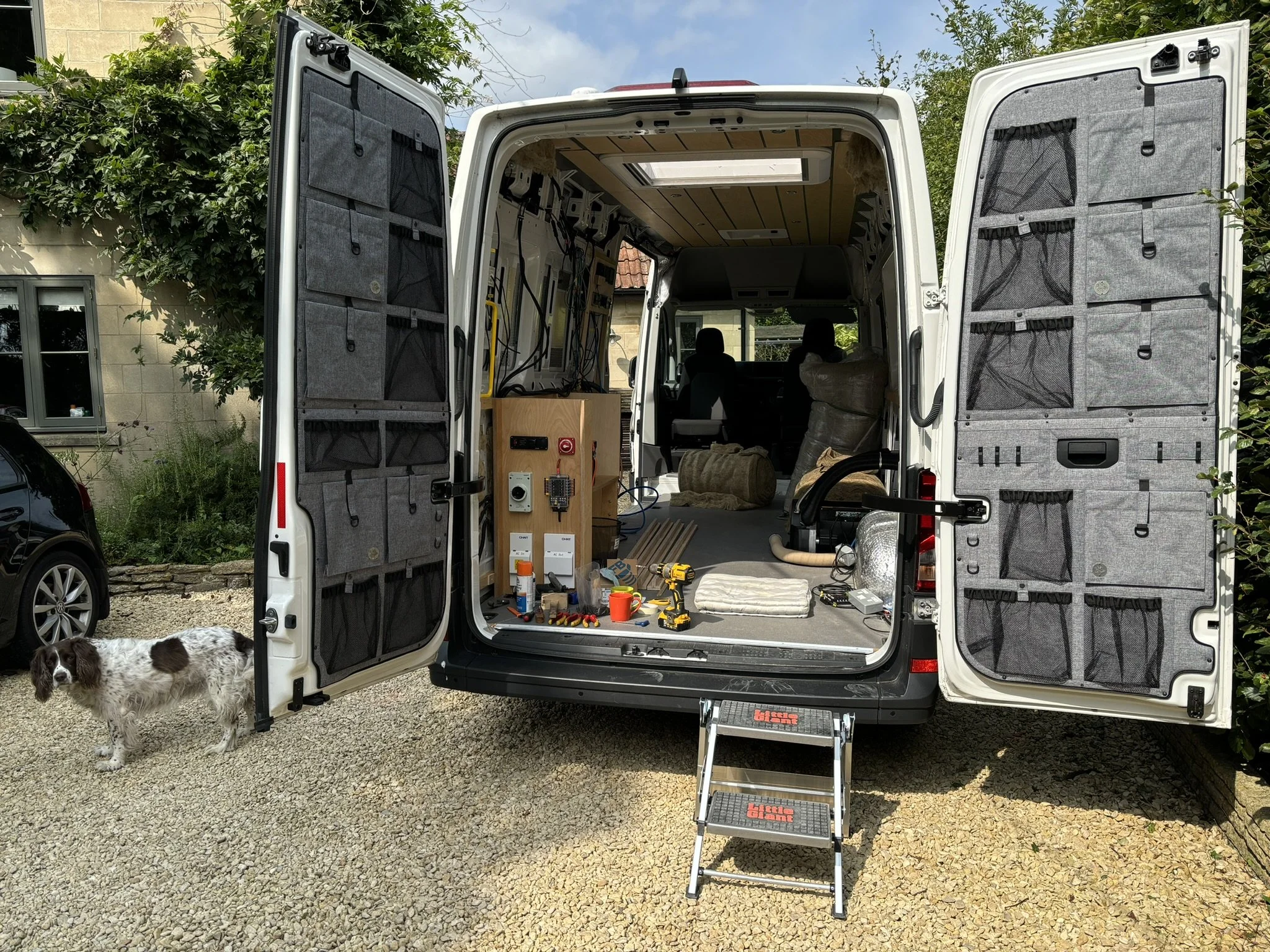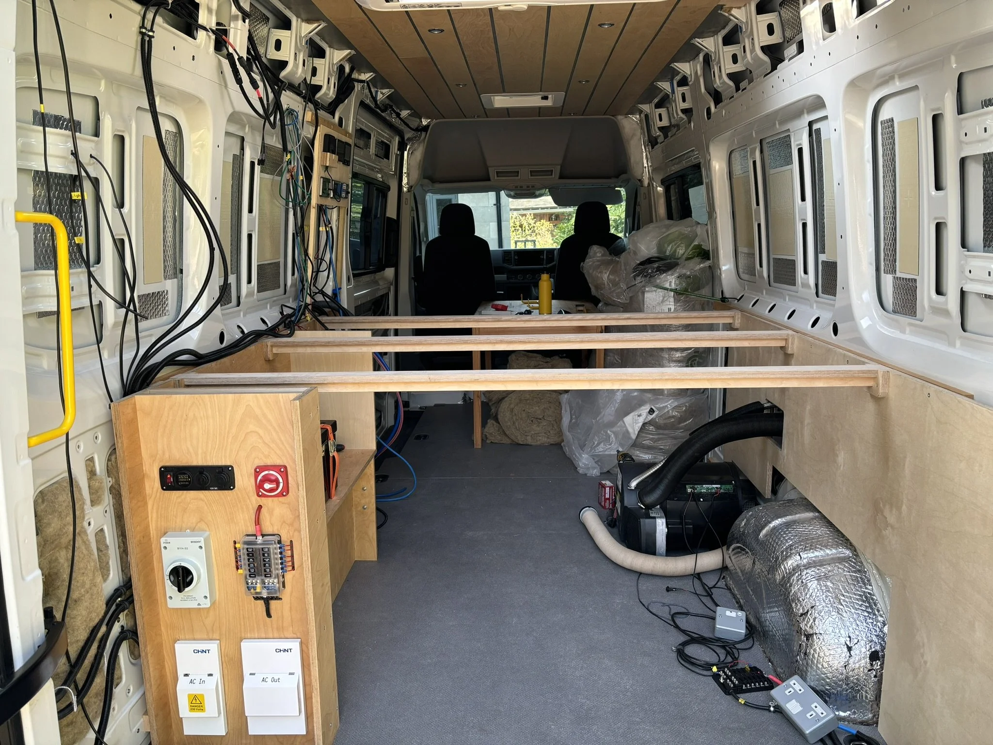 So here we are in Summer 2025 and we are camping in it. Still to build the front seats with concealed composting toilet. But the rear half is complete and all the systems are working - water, waste, heat and electric