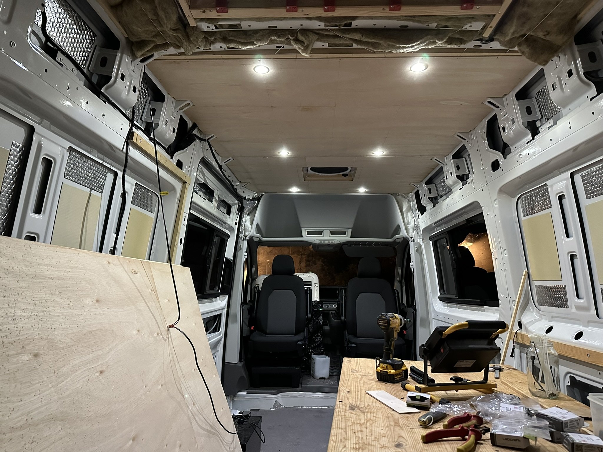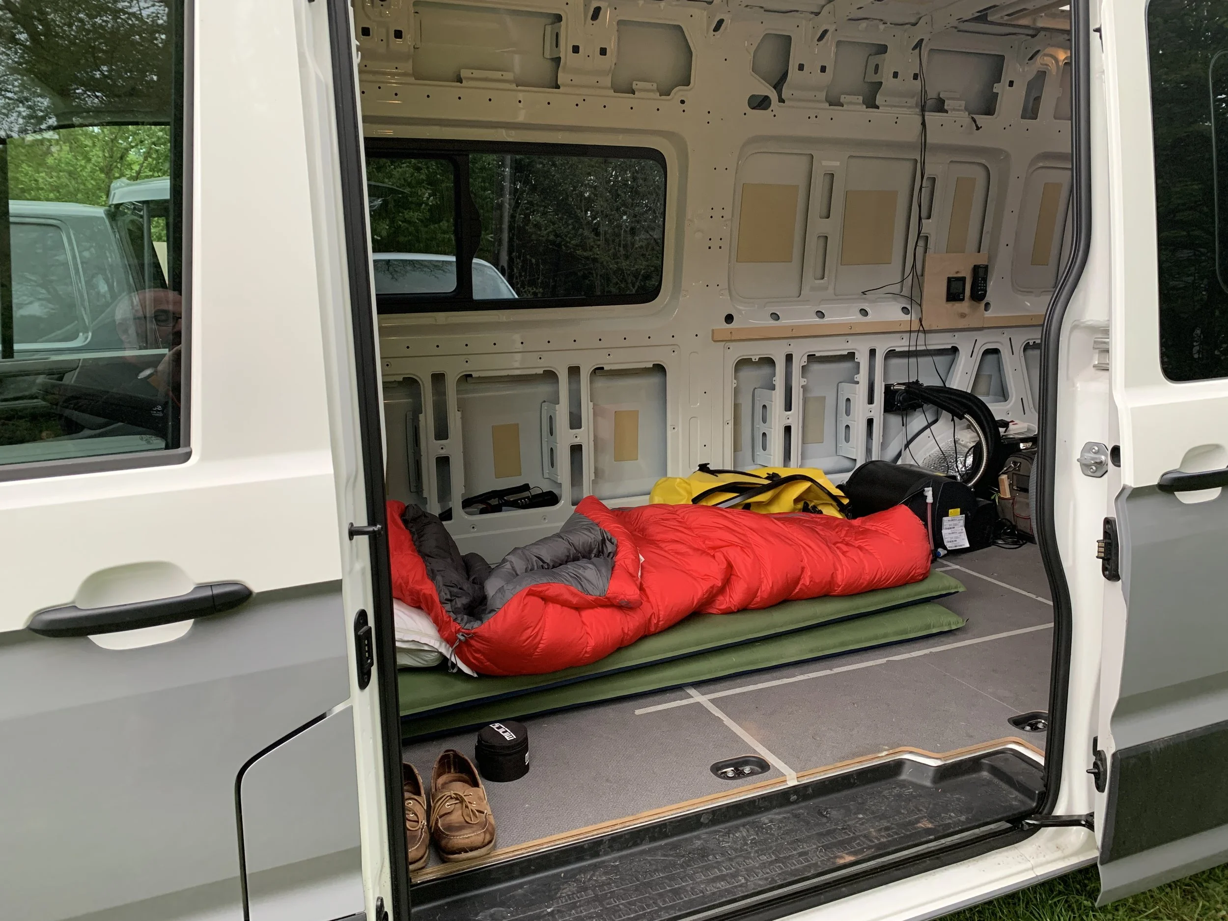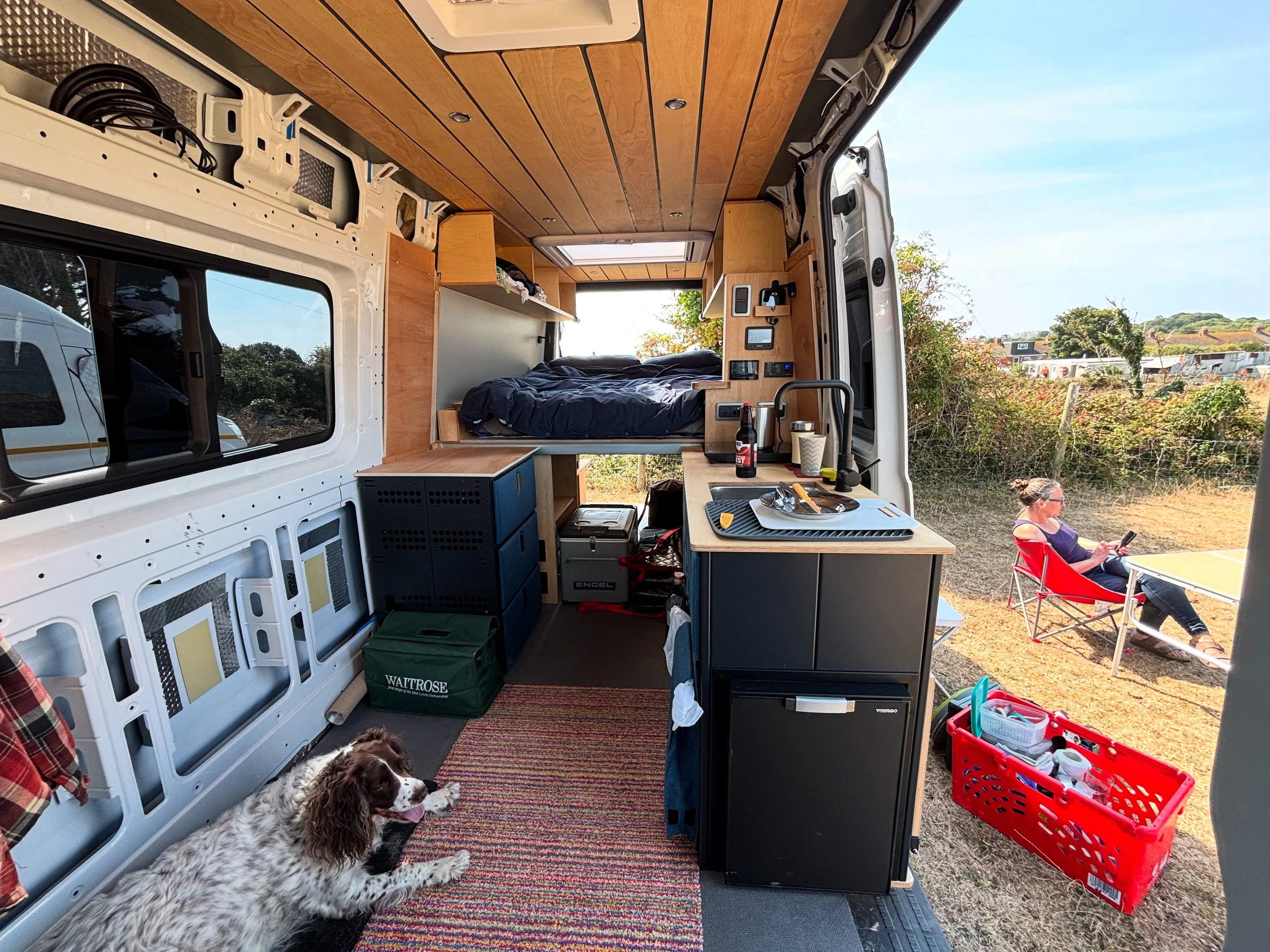 So here we are in Summer 2025 and we are camping in it. Still to build the front seats with concealed composting toilet. But the rear half is complete and all the systems are working - water, waste, heat and electric
