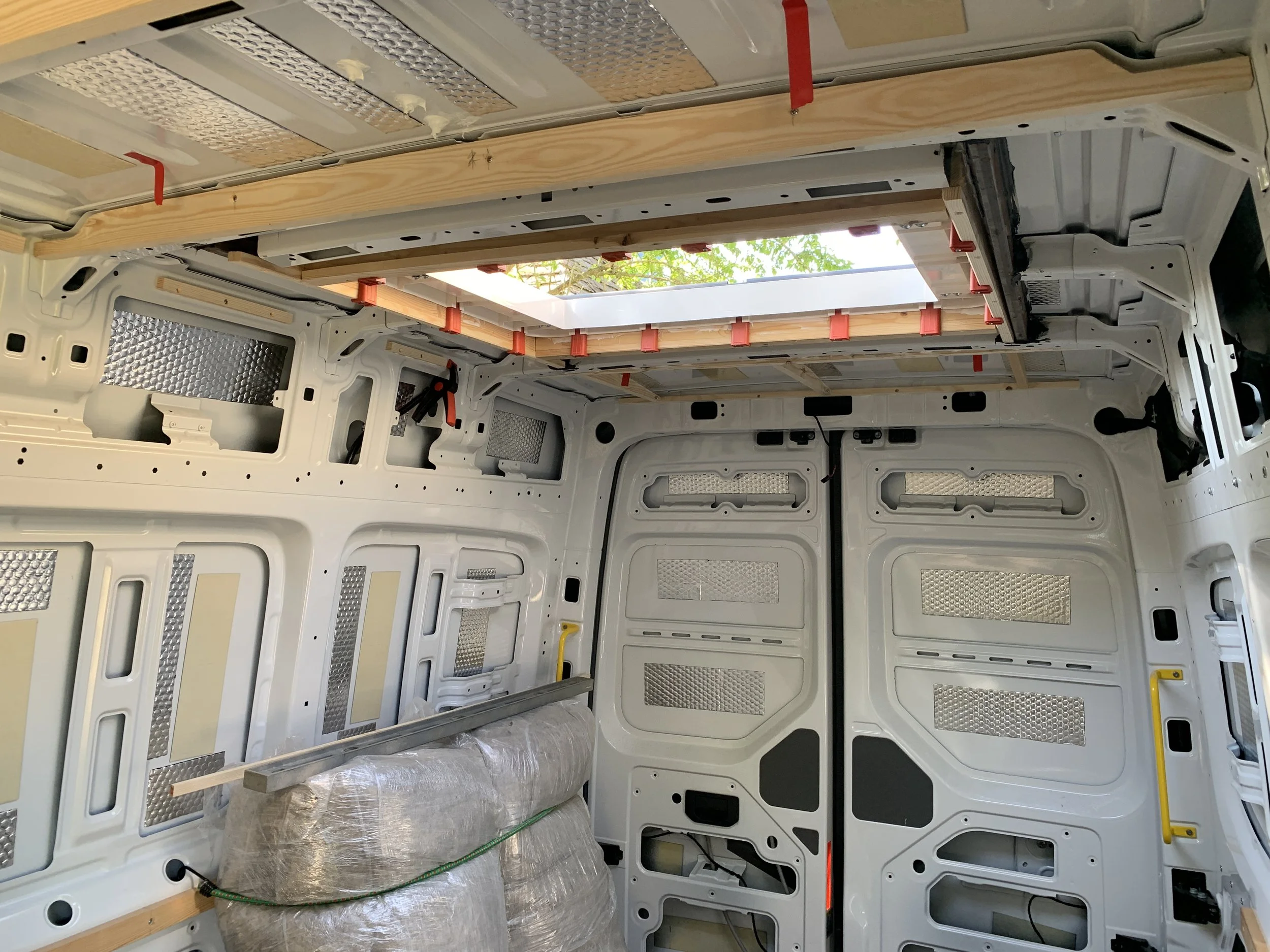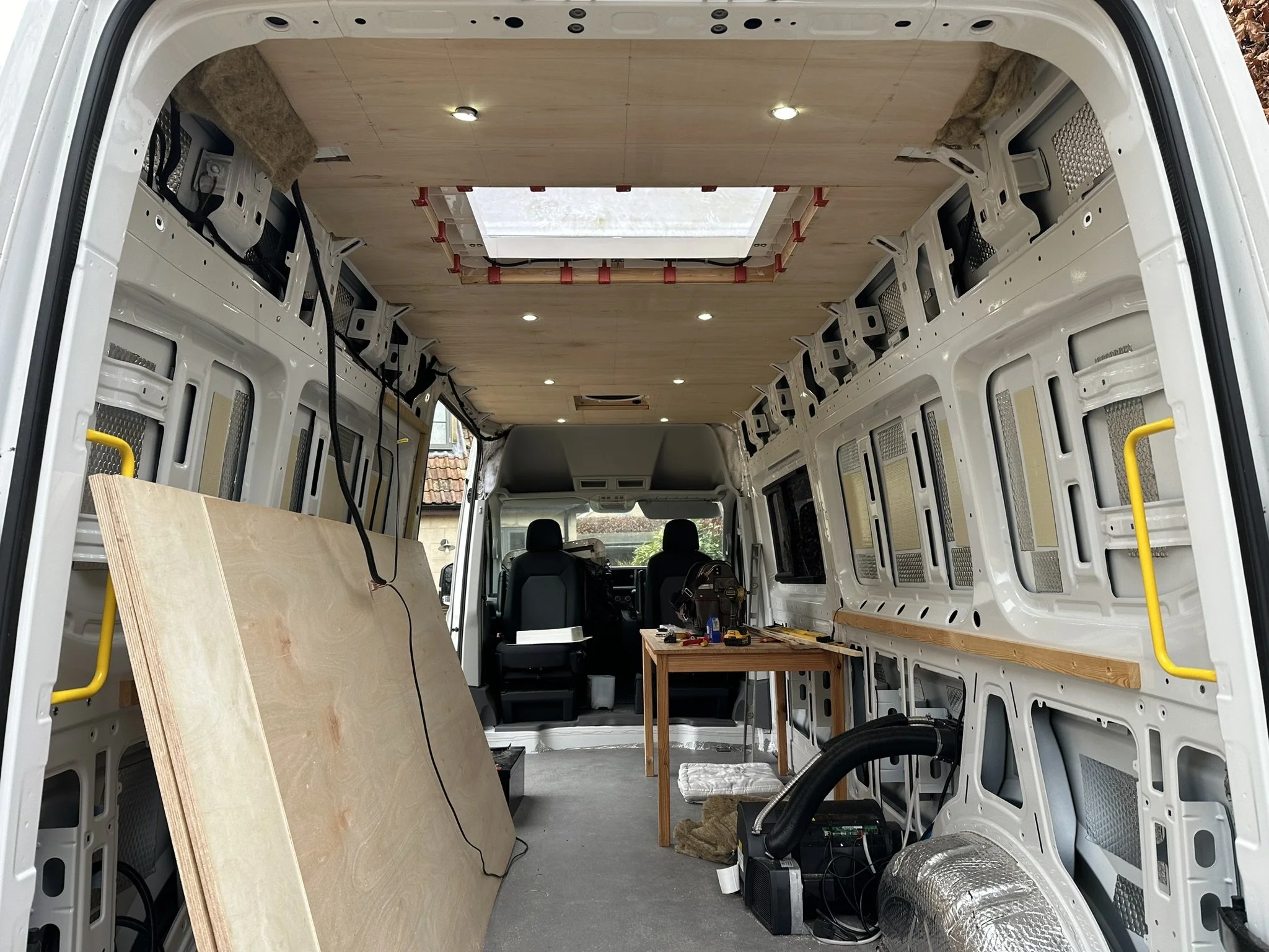 Mid 2021, having sold our VW T6 California camper at the height of COVID, we found a local converter who would get vans from VW for conversion. He would sell a few on unconverted. So we jumped at the chance. We also gave asked him to do a few bits to get us started: add a two tone paint job, fit the skylight, run some external cables, fit the diesel heater.