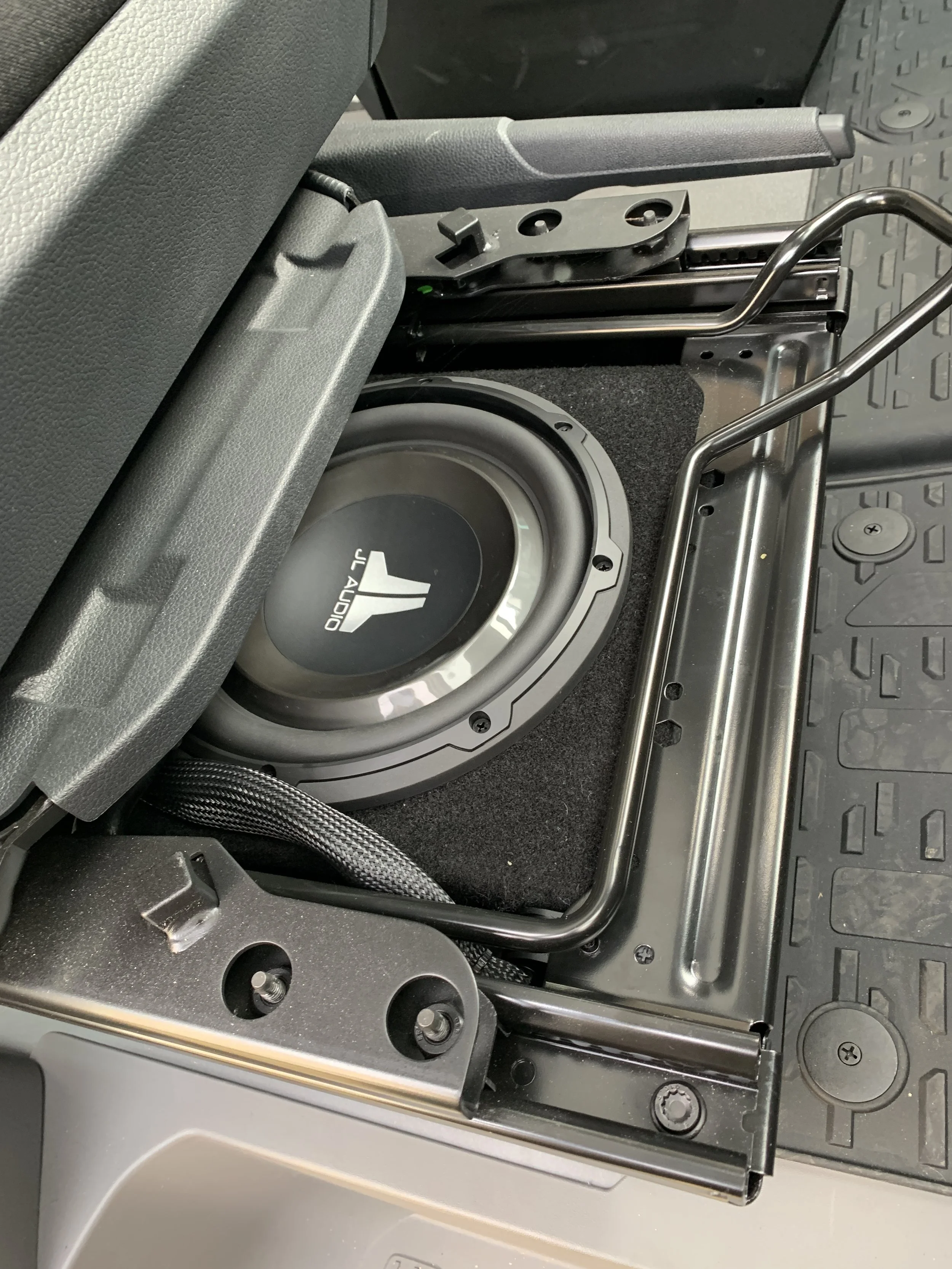 First job, off to beef up the stereo. External amp added, stock speakers replaced and sub-woofer under the driver’s seat - only visible addition is the amp gain switch on the dash. Marked difference. Not rattled any fillings out yet